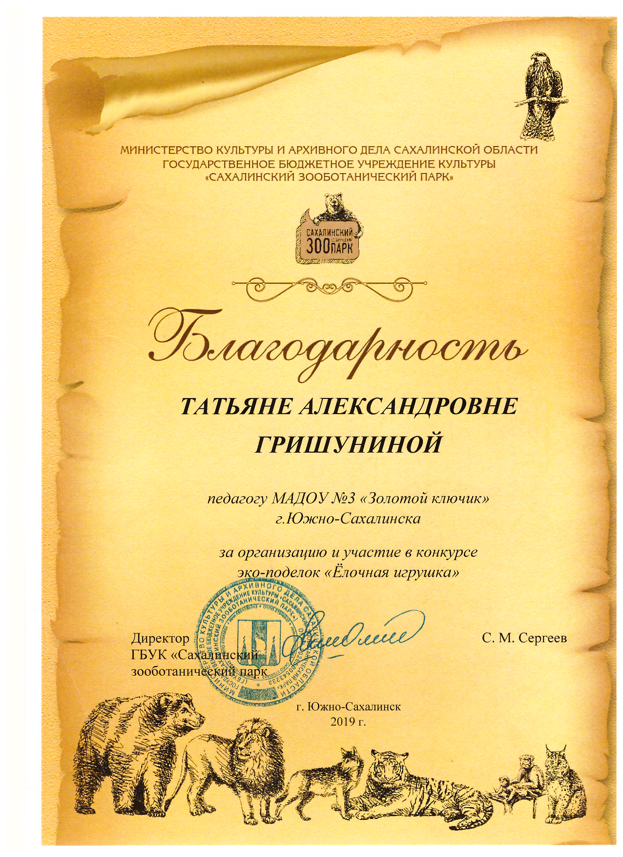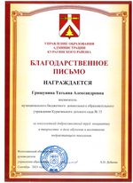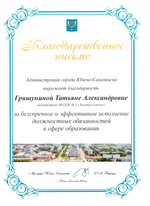 2020 г- Благодарность Мэра города Южно-Сахалинска.
