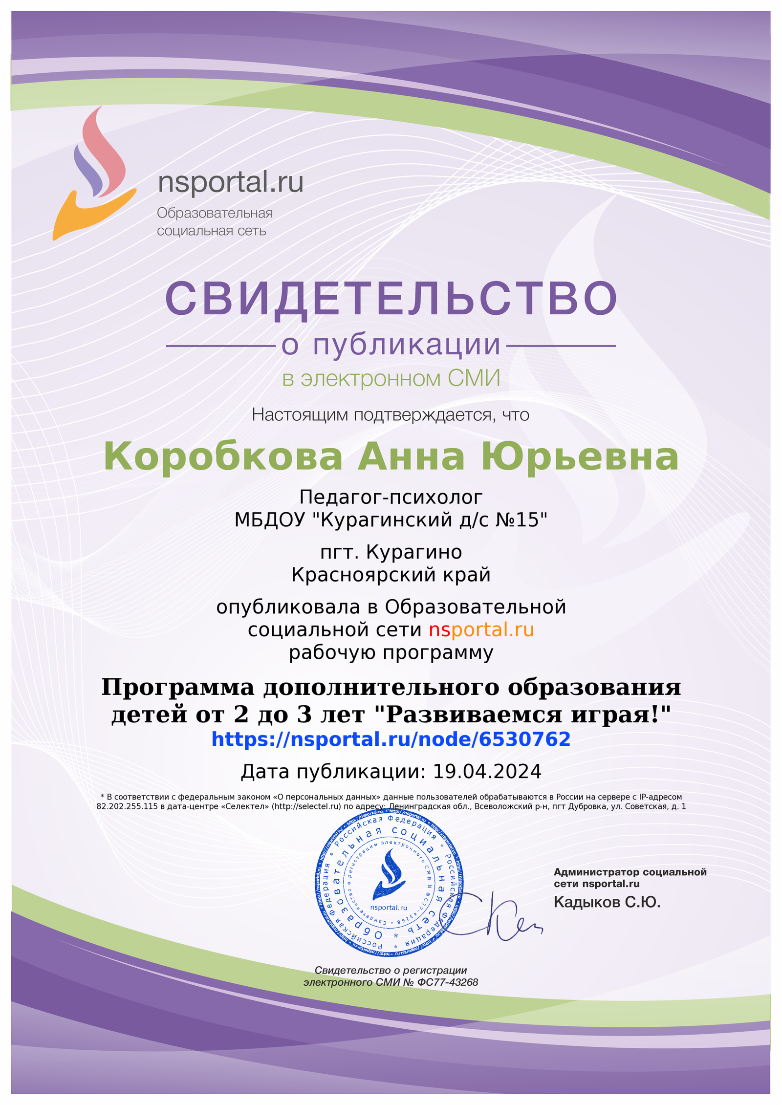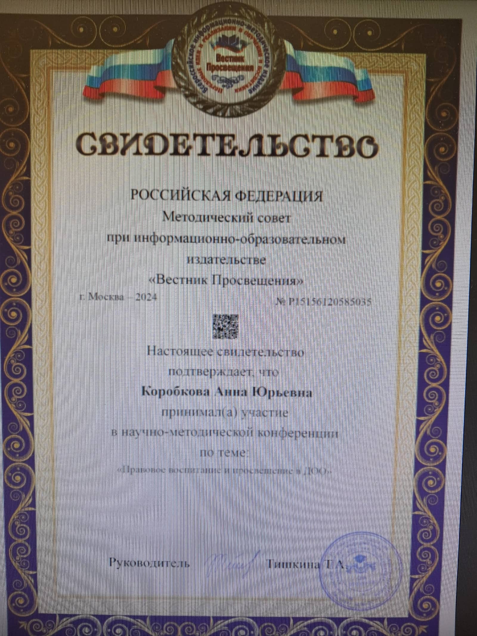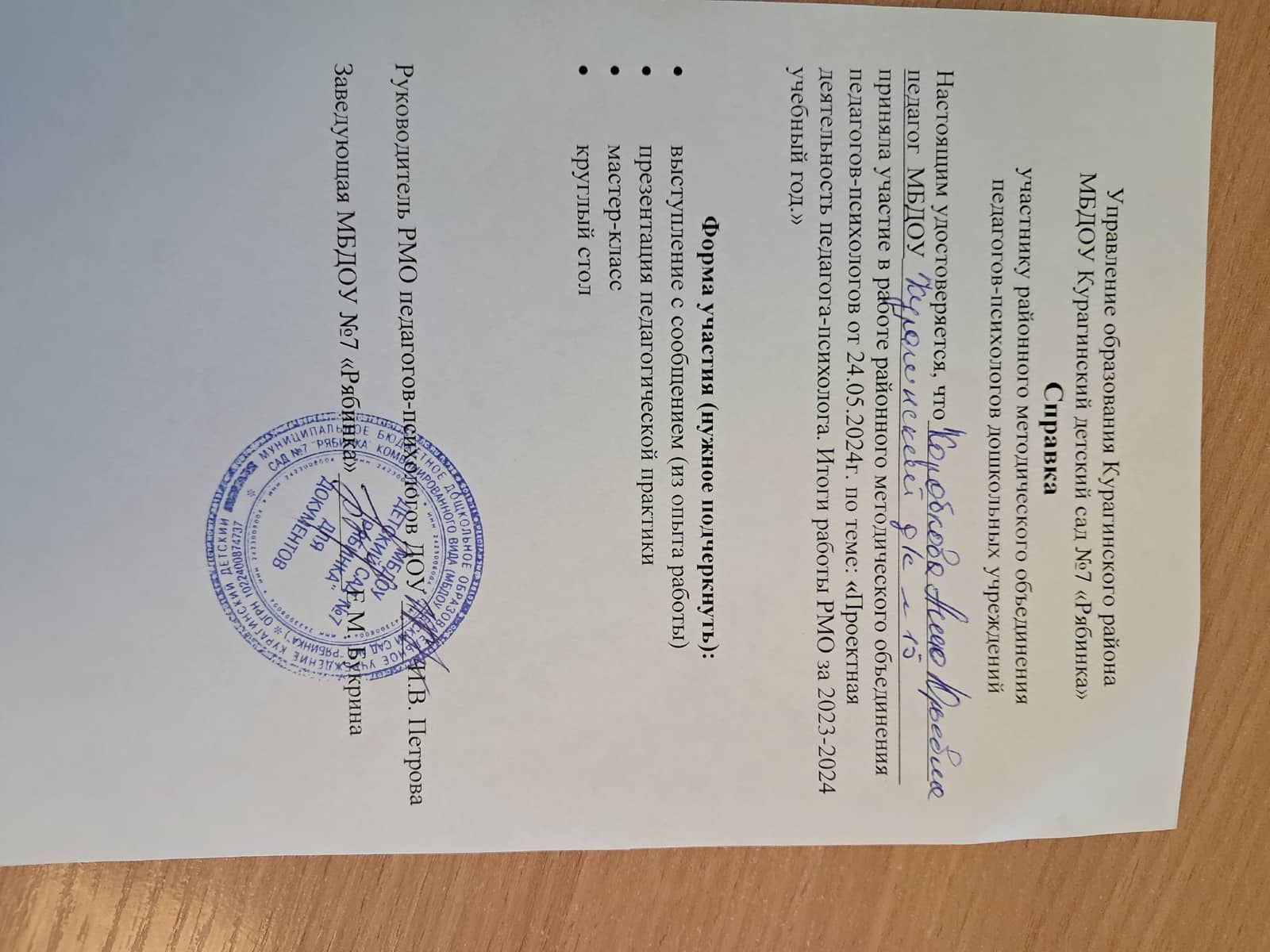 Курсы повышения квалификации, удостоверения, сертыфикаты, благодарственные письма, свидетельства, справки об участии в РМО и иновационных площадках