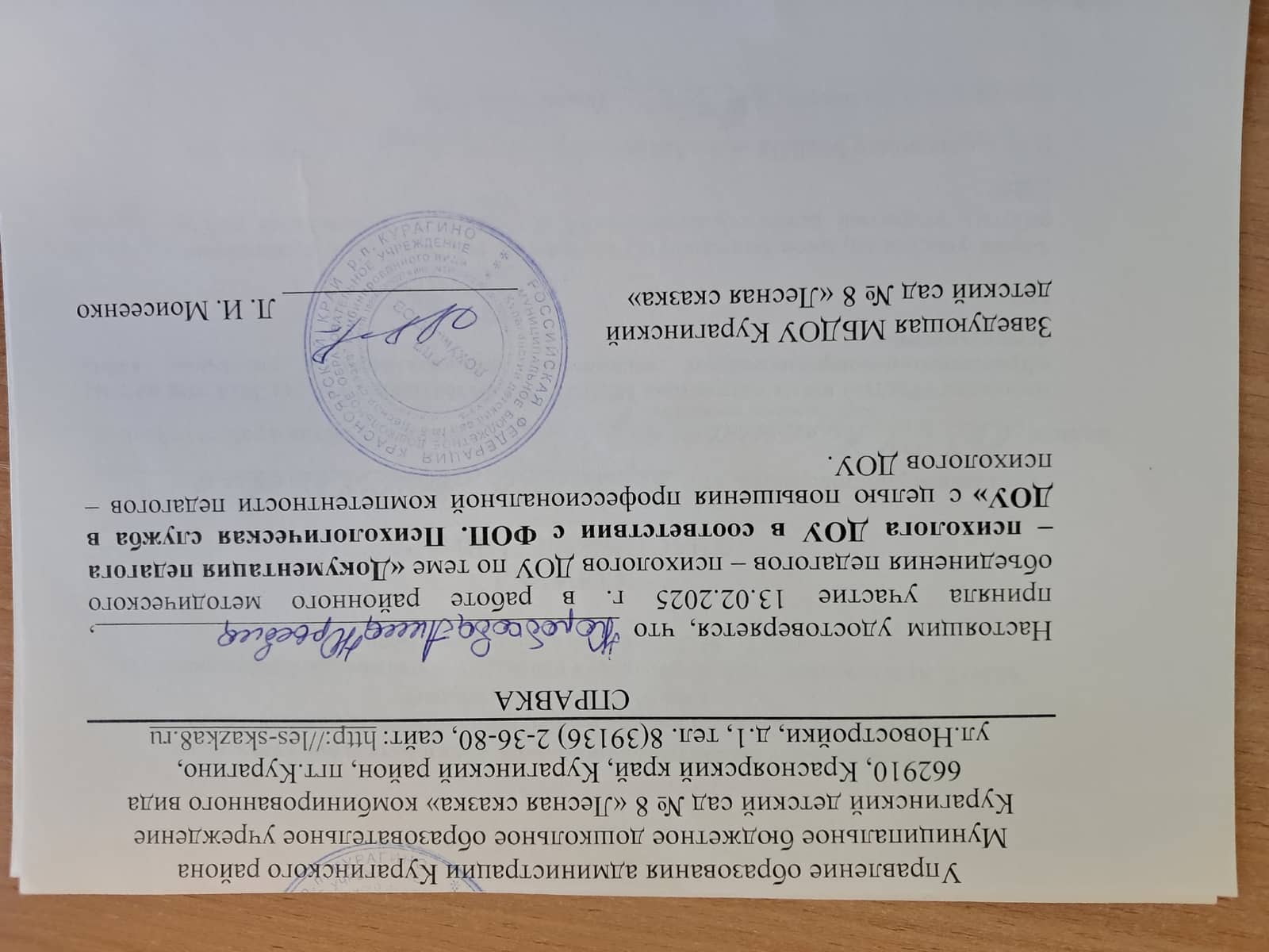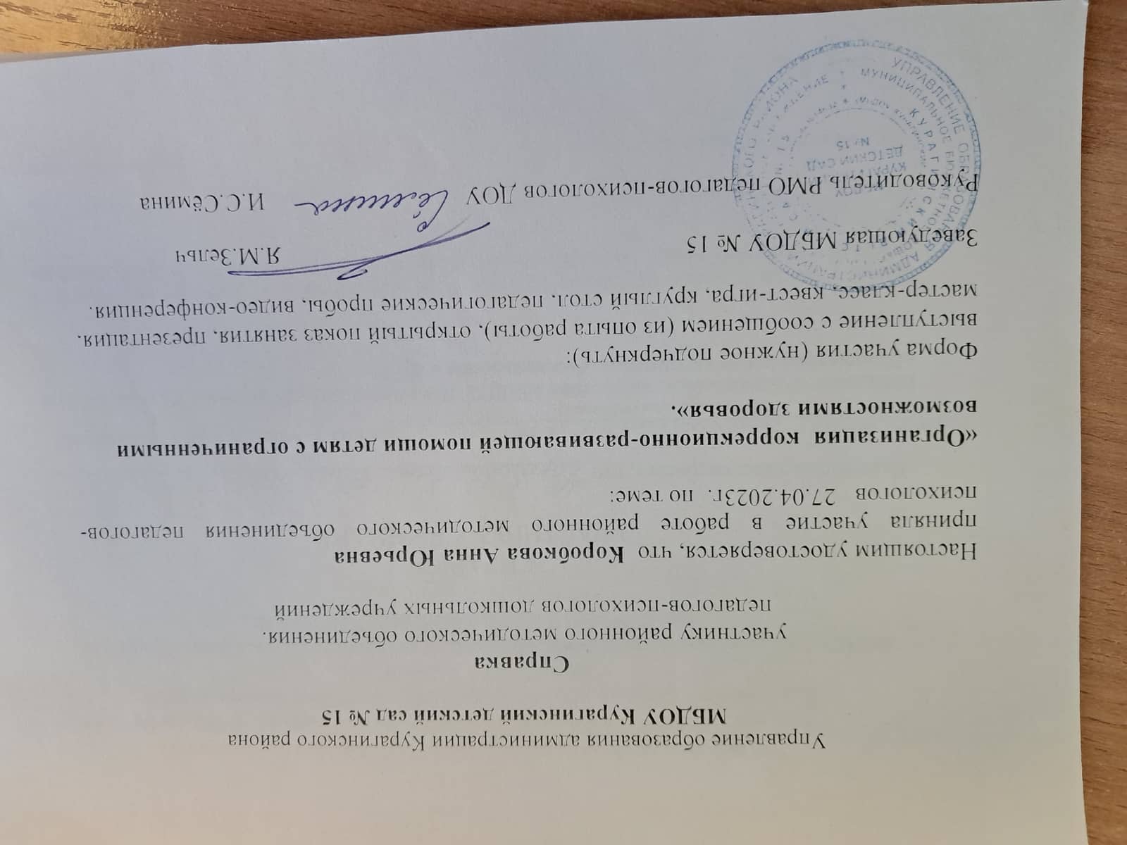 Занимаемая должность — педагог-психолог