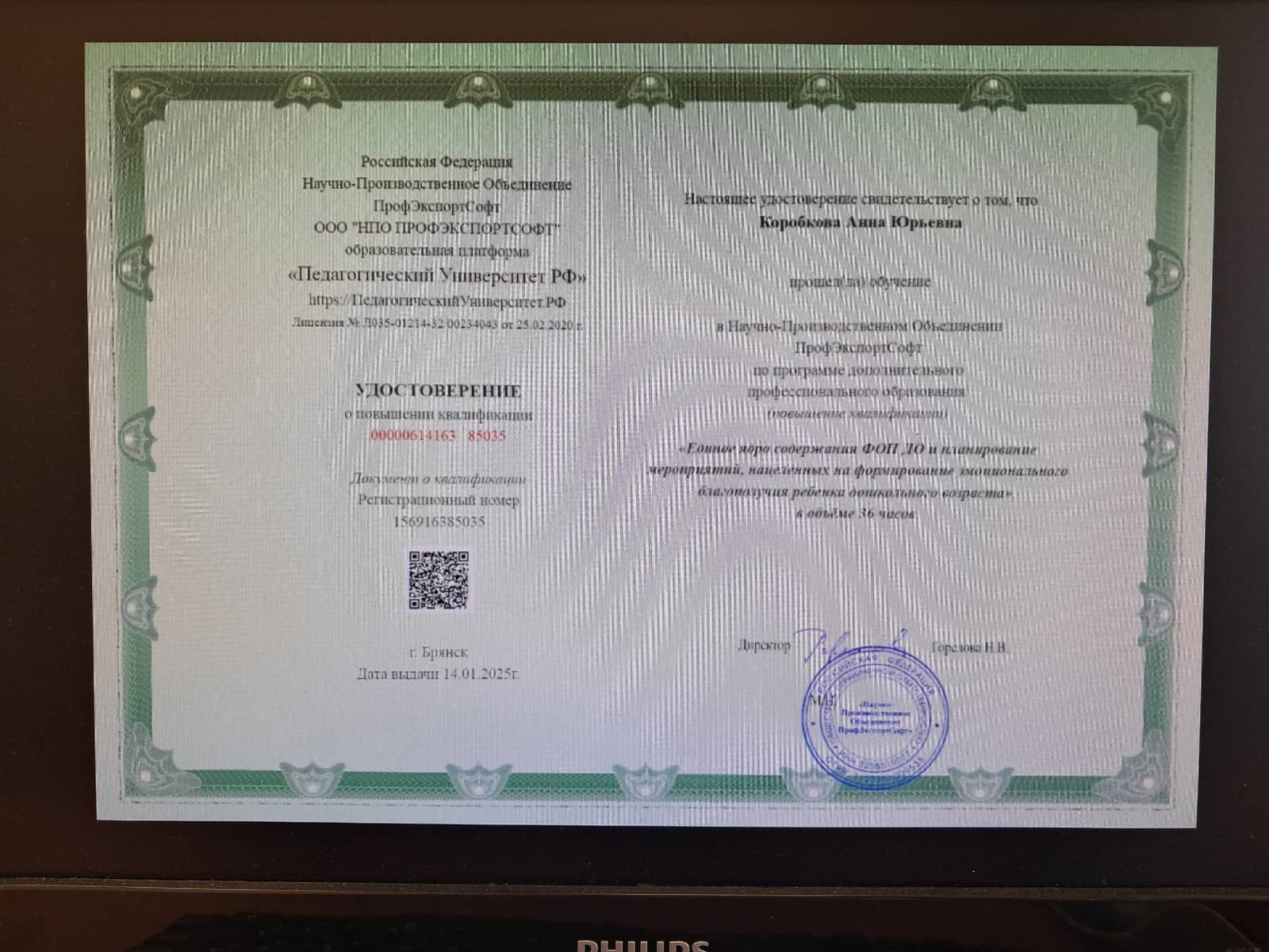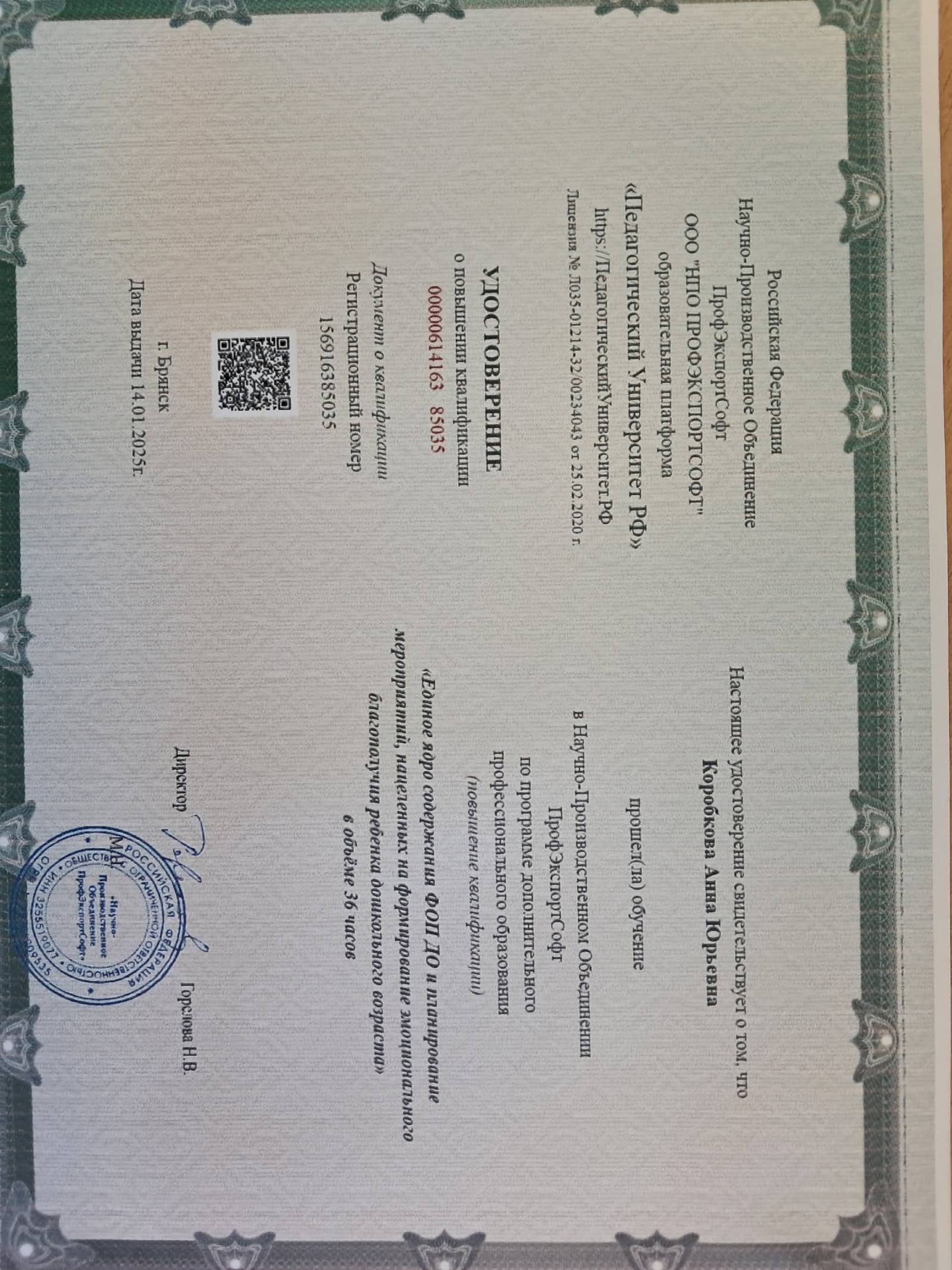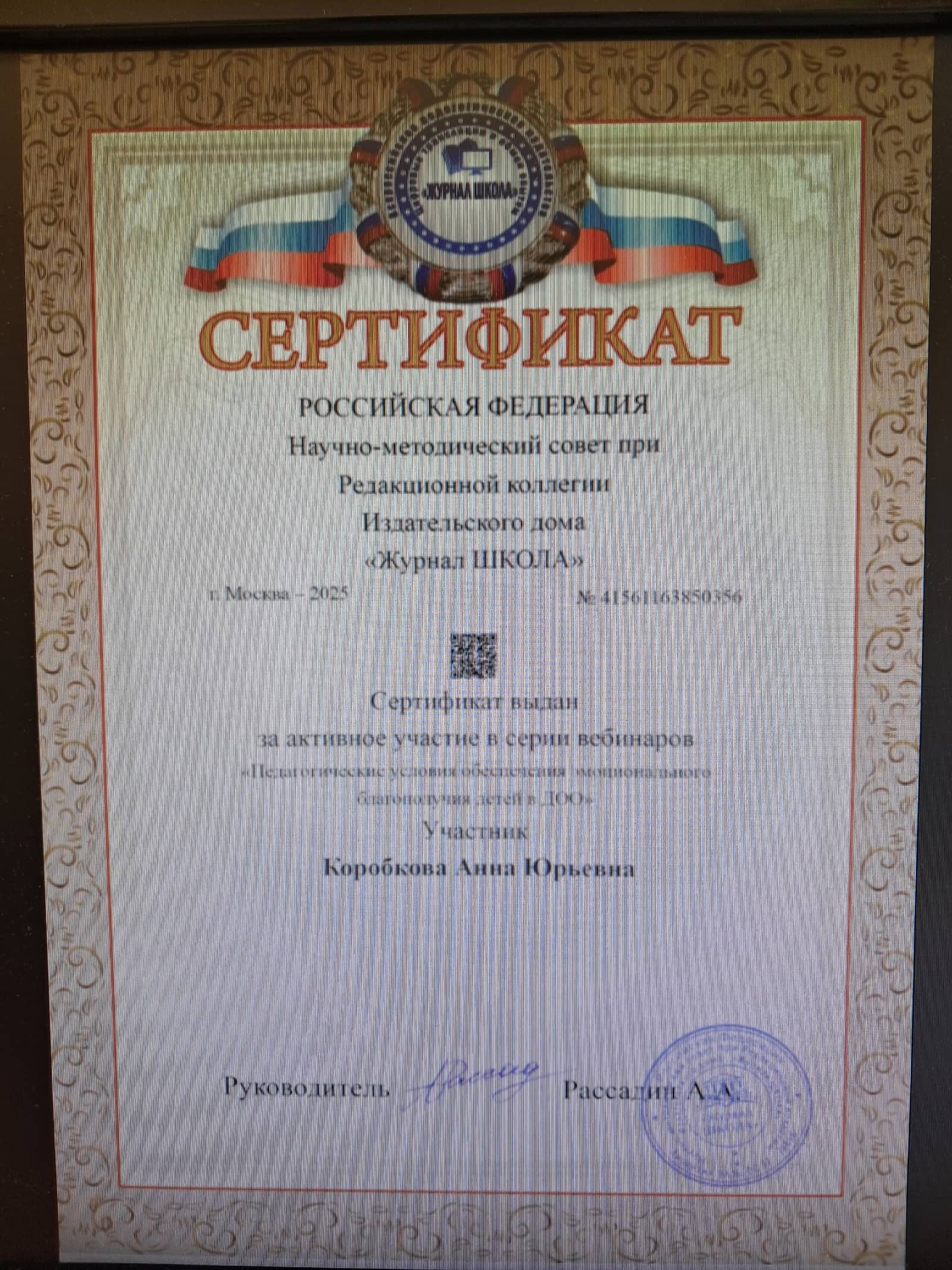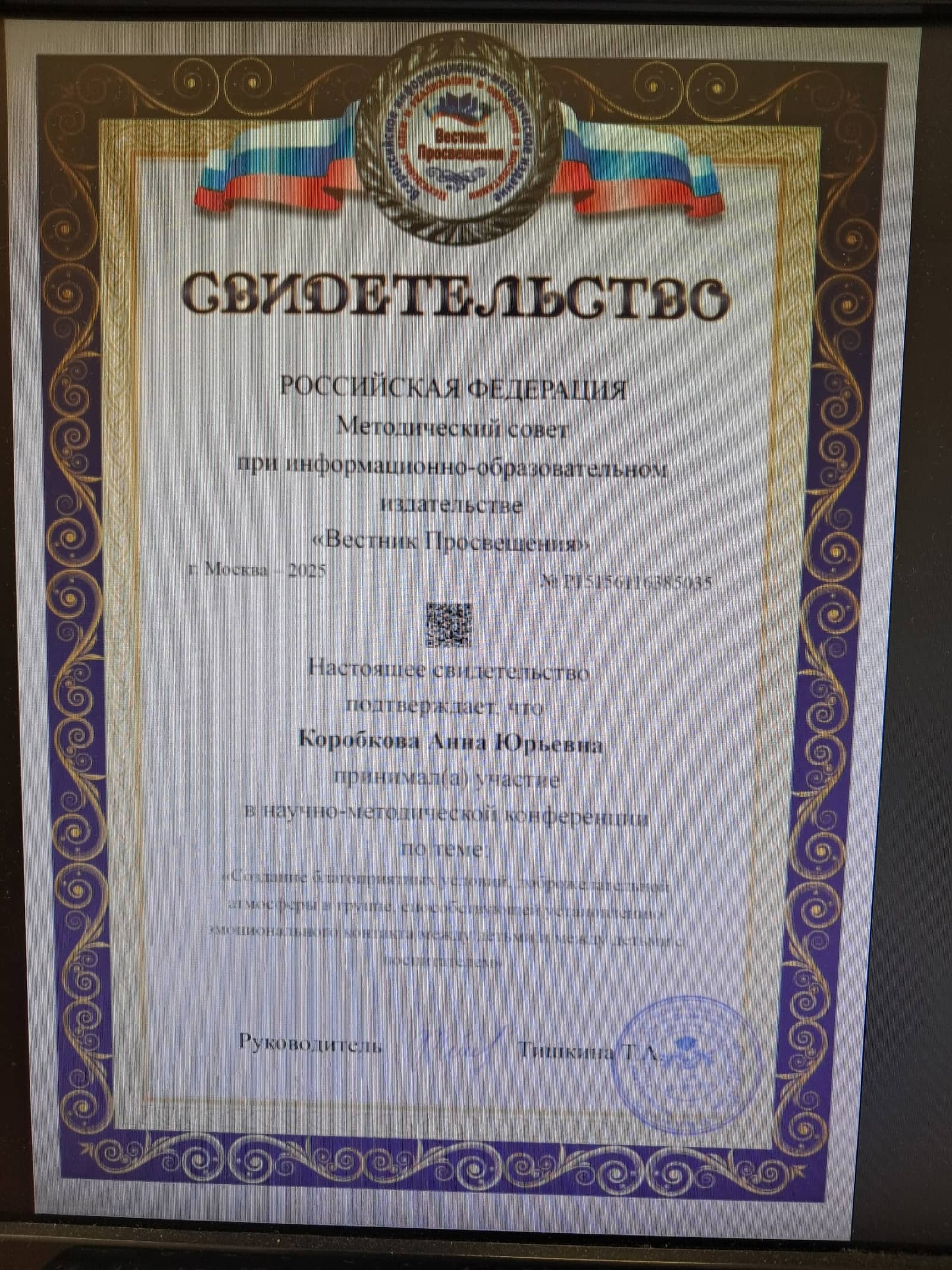Квалификационная категория — соответвие с заниамемой должностью (Приказ 21 п.3 от 16.05.2025г.)