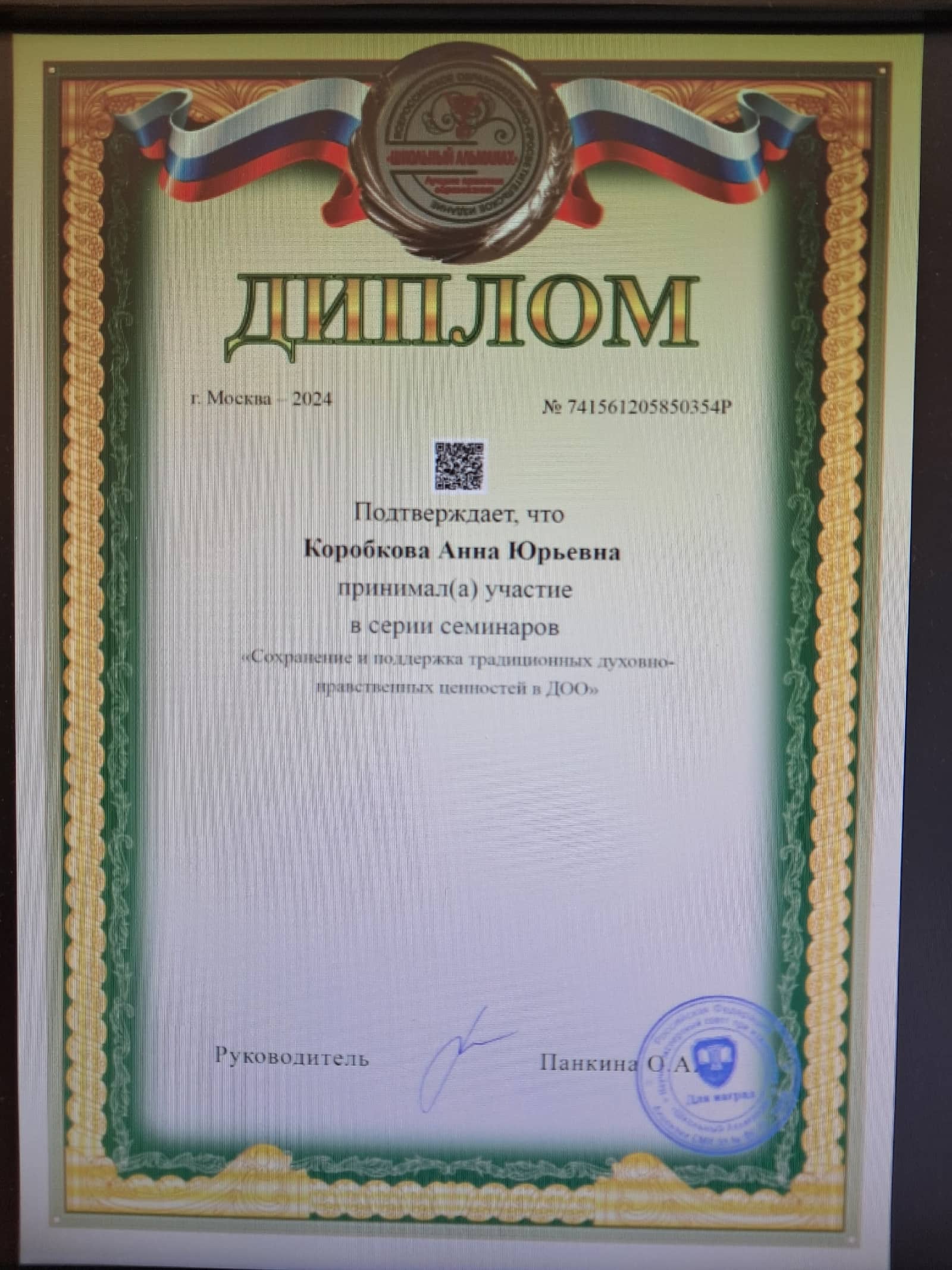 2024г. Методики и ключевые компетенции педагога дошкольного образования в контексте новой ФОП ДО и методических рекомендаций Минпросвещения по реализации федеральной образовательной программы дошкольного образования в 2023/2024гг. (144 часа);