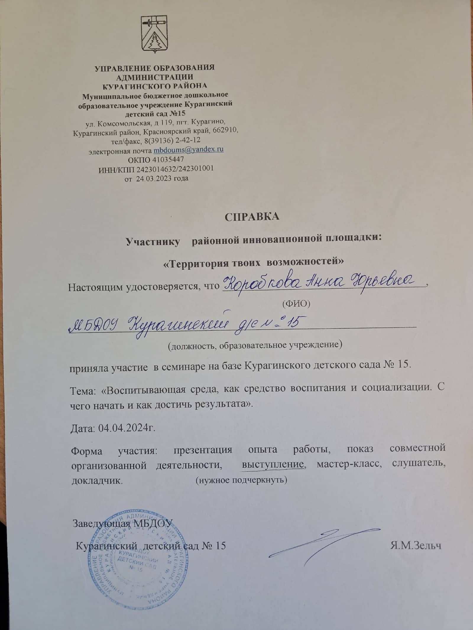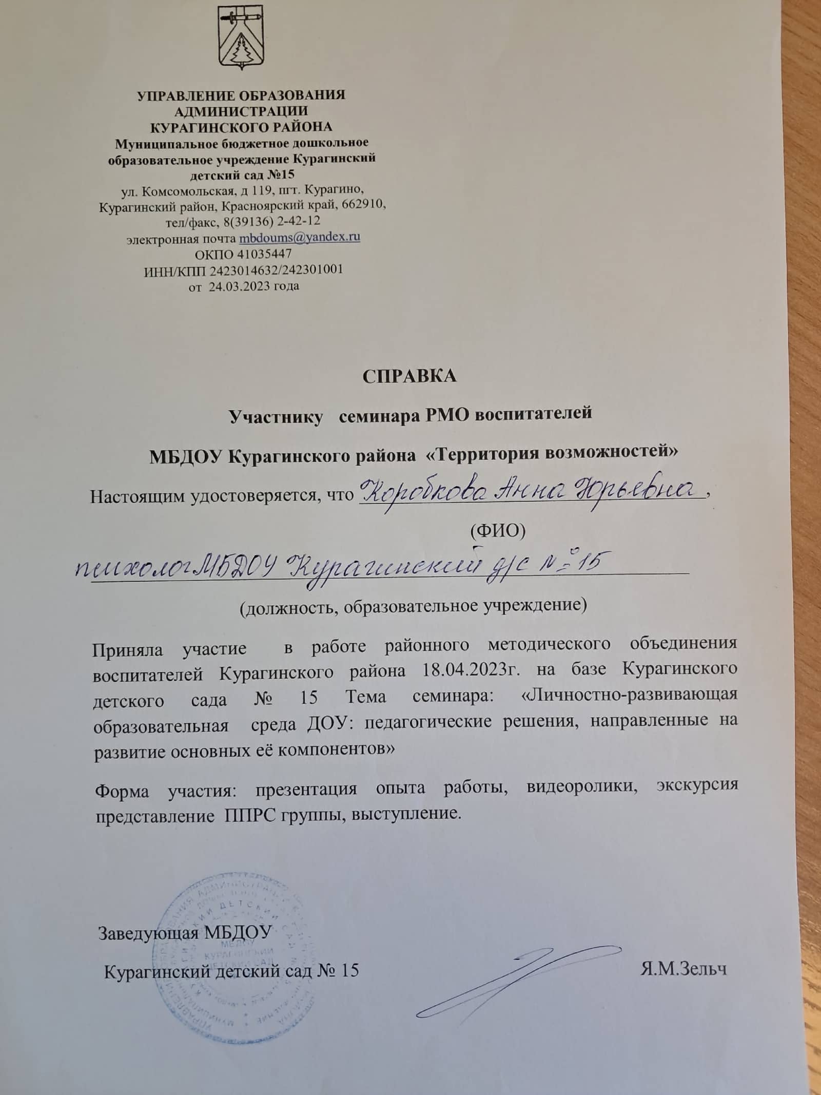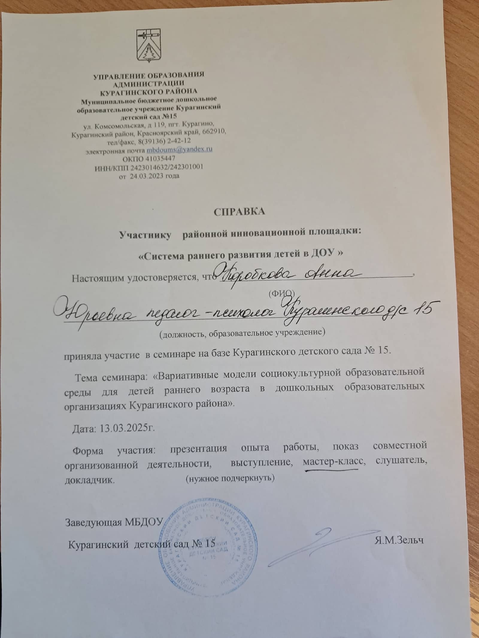"Курагинский детский сад № 15"