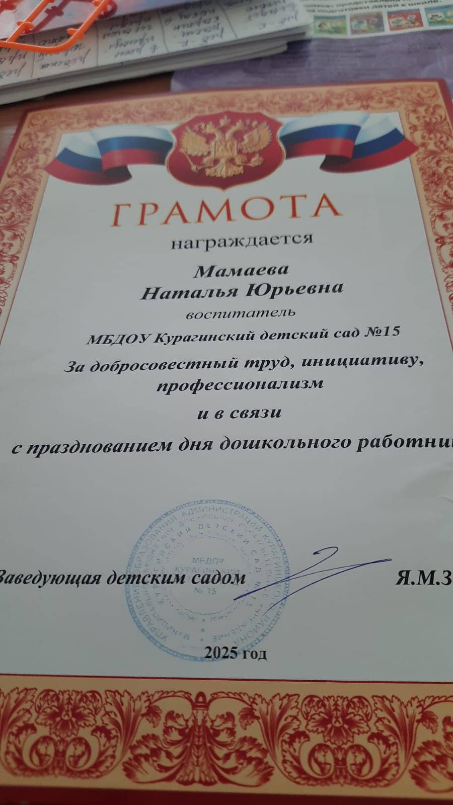 Занимаемая должность- Воспитатель